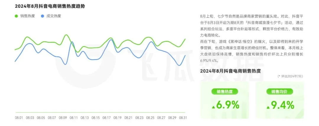 2024年8月抖音直播電商營銷分析:大盤保持高位,銷售均價環增9.4%_風聞