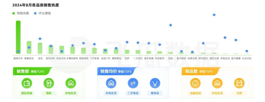 而在下旬,遊戲《黑神話:悟空》的爆火,及開學季營銷則成為商家生意增長的絕佳時機。整體來看,本月線上大盤依舊保持高位,銷售熱度和銷售均價環比上月分別增長6.9%/9.4%。