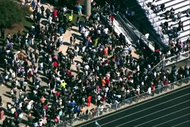 據報道稱,因為來處理槍擊案的警察太多,以至於心急如焚的家長們不得不把車停在距離球場一英里的地方,然後步行去找他們的孩子。“警察太多了,我都數不過來。整條路都被堵住了,”一位女士這樣説道。