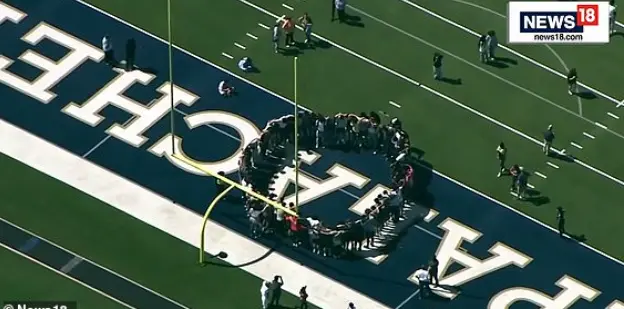 一些學生跑到足球場後圍成一圈,似乎在祈禱