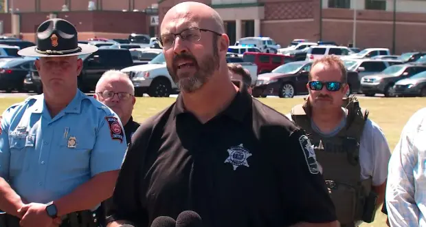 伯羅郡警官朱德-史密斯(Jud Smith)在阿帕拉切高中外向媒體發表講話。他説:“你們在我們身後看到的是一件邪惡的事情。”