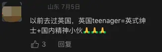 “以前去過英國,英國teenager=英式紳士+國內精神小夥。”