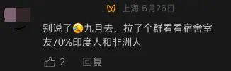 “別説了,九月去,拉了個羣看看宿舍室友…70%印度人和非洲人。”