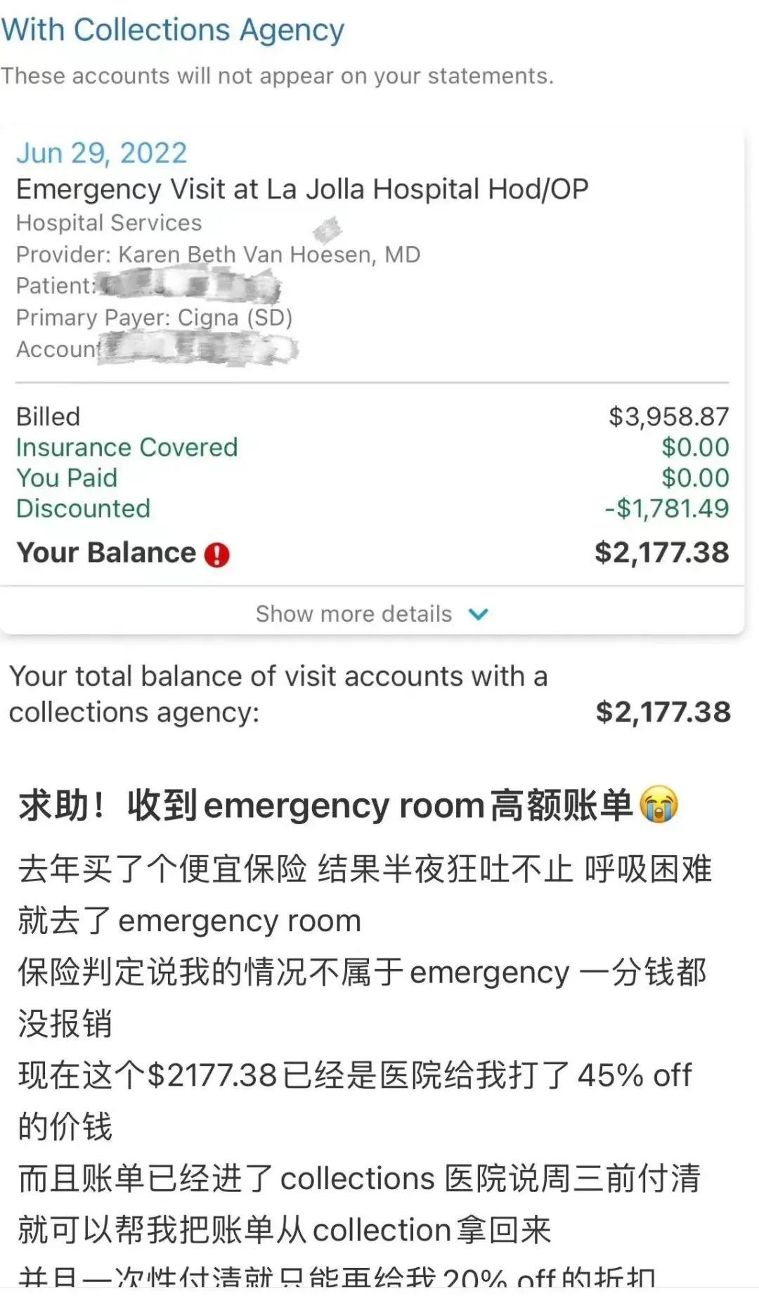 “半夜狂吐,去了急救室,保險判定不屬於緊急情況,一分錢不報銷“