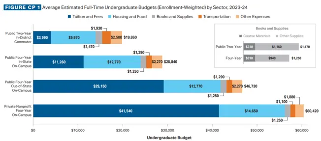 根據College Board(美國大學理事會)公佈了最新的2023-24年高等教育費用報告。