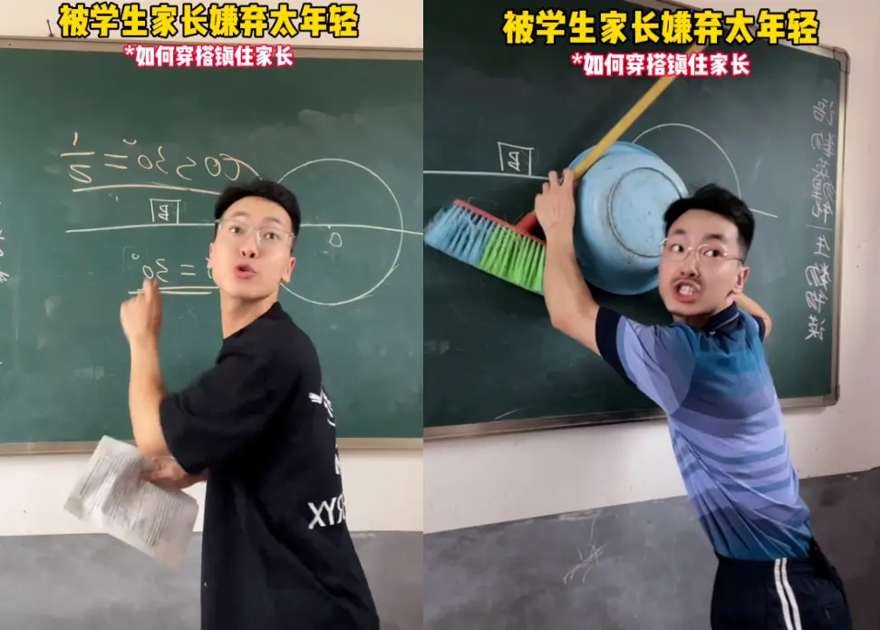 新人教師正是容易犯怵的時候,模仿模仿上一代老師們的威嚴形象、狐假虎威一番,可以在學生與家長面前壯壯膽、撐撐場子。