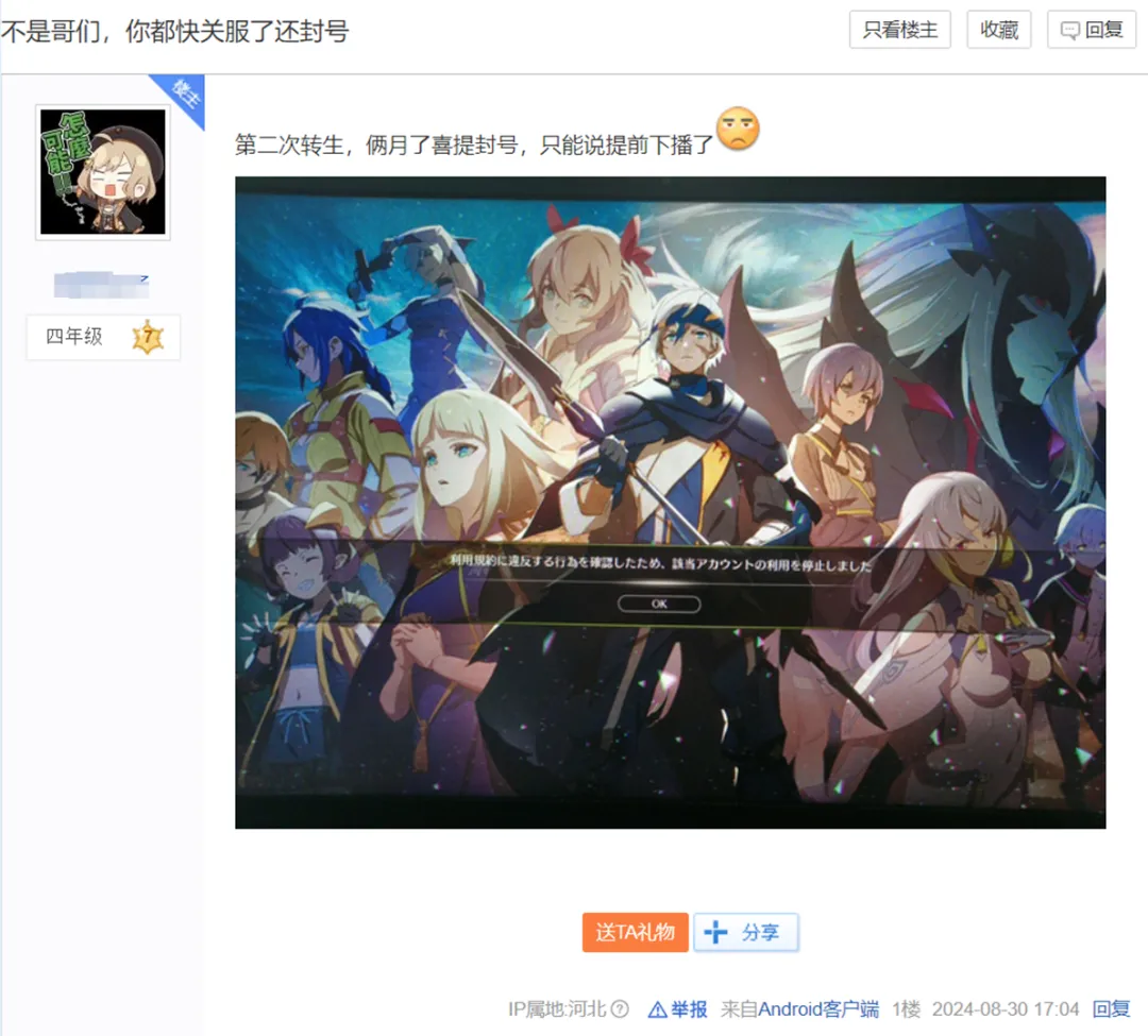 俗話説“人之將死,其言也善”,可萬代就連在宣佈停服消息後,還執意要進行IP封禁,據猜測現在萬代都是用AI腳本進行封號,力度一點也沒有減弱。不少國內網友在進行“臨終關懷”的時候都表示,“自作孽不可活”“有錢不賺是真的牛”。