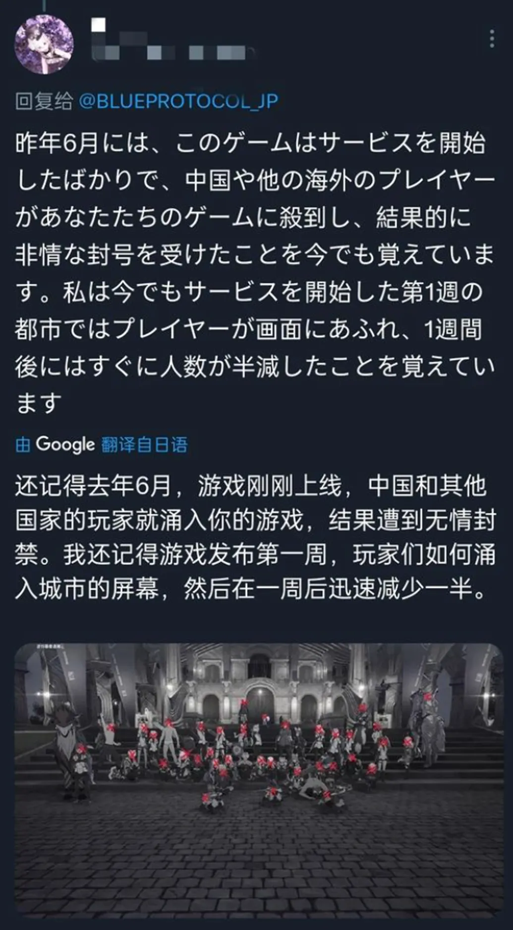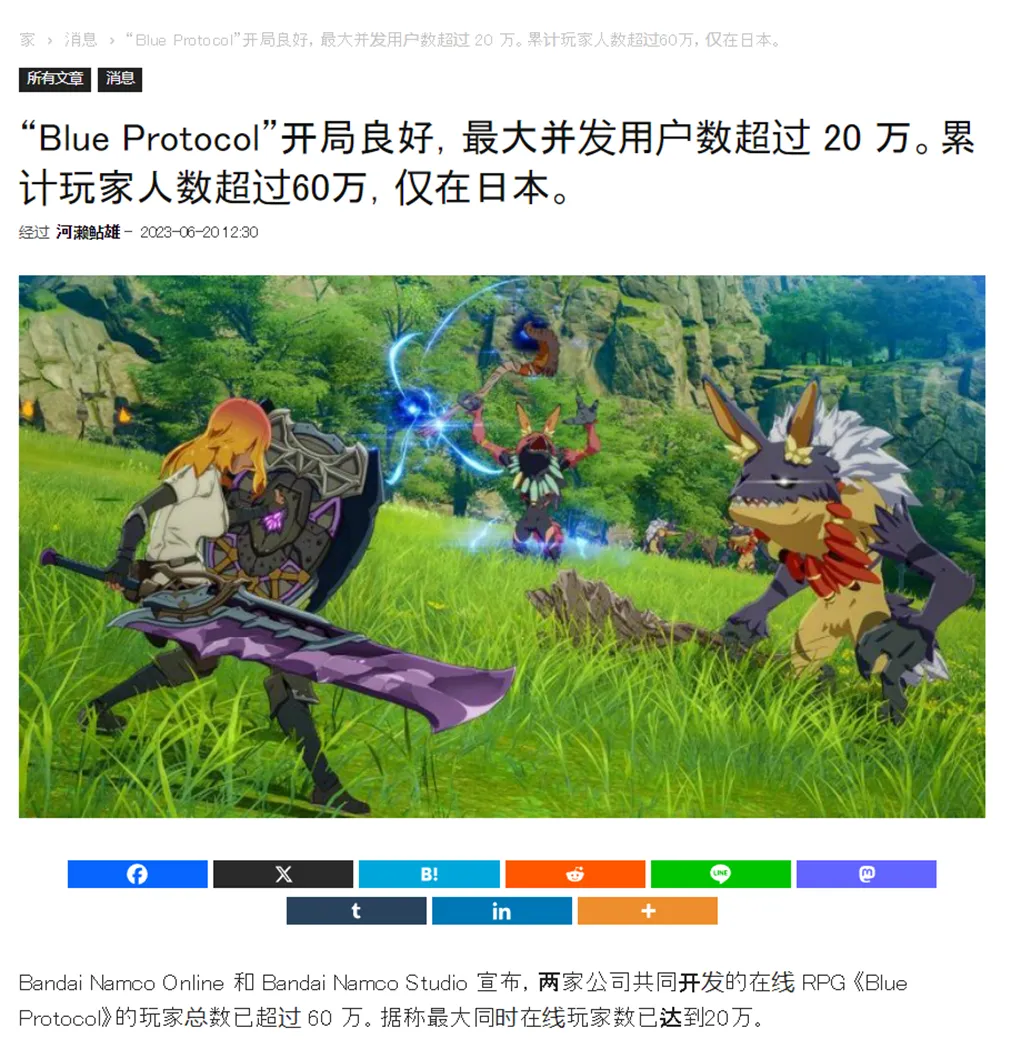 《藍色協議》在23年開服的時候,曾迎來過一波小高潮,開服前幾天服務器一直處於爆滿的狀態,而且據當時日媒的報道,開服首周的同時在線人數也來到了20萬人,並且打破了萬代南夢宮的網遊記錄。對於一個當時僅有日服的本土遊戲來説,這個成績是可以爽開香檳的。