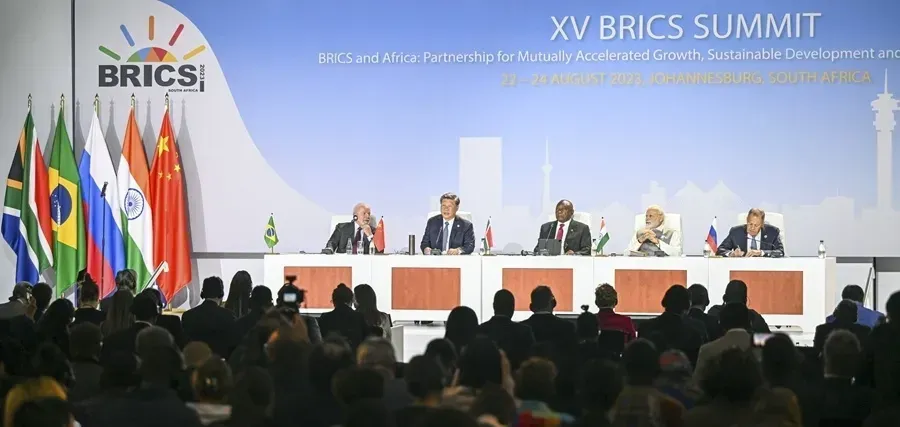 ▲2023年8月24日,金磚國家領導人第十五次會晤特別記者會宣佈,邀請沙特、埃及、阿聯酋、阿根廷、伊朗、埃塞俄比亞正式成為金磚大家庭成員。