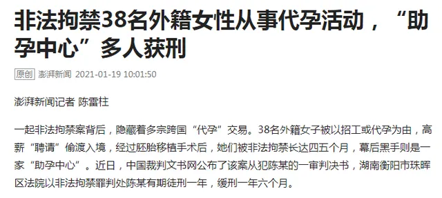 或許是因為目前國內相關法律法規主要是禁止醫療機構和醫務人員,對代孕機構、中介、客户沒有專門處罰規定,讓這些行為鑽了空子。