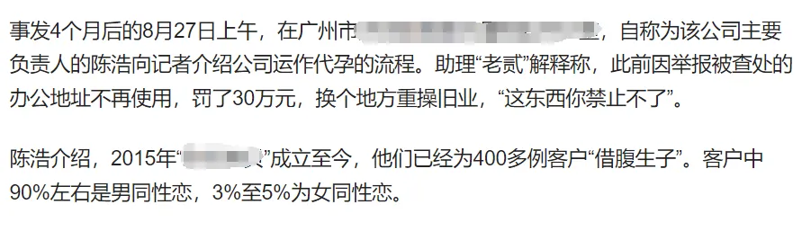 除開這些想生生不了的,另一羣對代孕有“剛需”的是同性戀羣體。市面上甚至有專門的代孕機構為他們服務,屢查不止,關了又開。