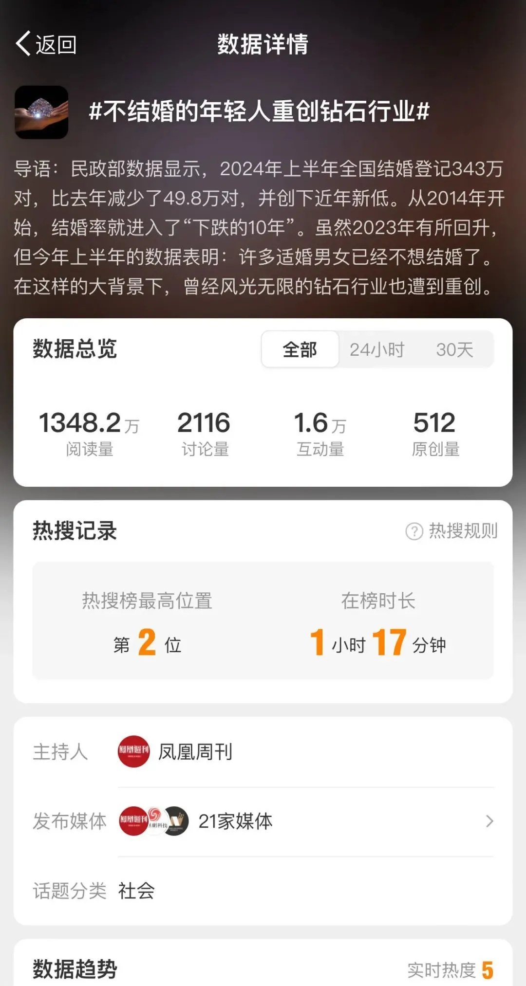 年輕人不想結婚,會讓眾多與婚戀強捆綁的產業下行,鑽石就是其中之一。