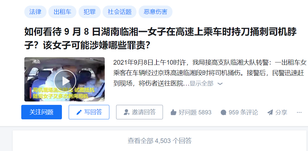 像這種男性司機和女性乘客糾紛,相關案例挺多,每一次基本上都是男方吃虧,最典型的就是這個女子刺傷司機,