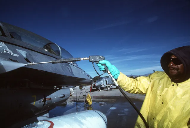 另外,機身的清潔工作也能讓機身上的裂紋和損壞被及時發現。因此,飛機在進行定期維修時都會順便“洗個痛快澡”。而對軍用飛機而言,清洗主要是為了防止機身被腐蝕,特別是在沙質和鹽水環境中飛行的飛機。同樣地,在一些沿海城市,客機被清洗的頻率相對其他地區會高一些。