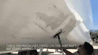 在乾洗過程中,工作人員會給飛機蒙皮塗上一種特殊的清潔劑,它會和污垢融合,當其被專業的清潔用具擦拭時,能在不磨損機身的前提下將污垢帶走。阿聯酋航空就廣泛使用乾洗技術,並聲稱乾洗每年可節省1170萬升水。近些年,我們國內的客機清洗也普遍採用乾洗。