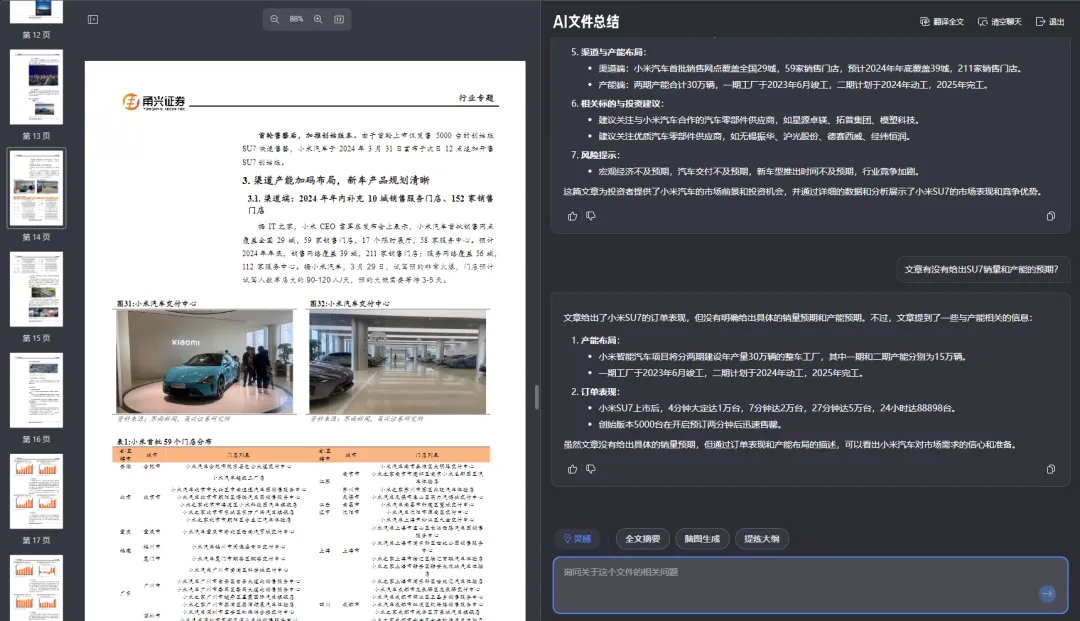 至於AI寫作、超長文本閲讀和文檔總結摘要功能,更是早已成為大模型的基礎配置之一:將Word或者PDF等格式文件上傳到夸克之後,可以要求AI總結全文,也可以對文章內容單獨提問。
