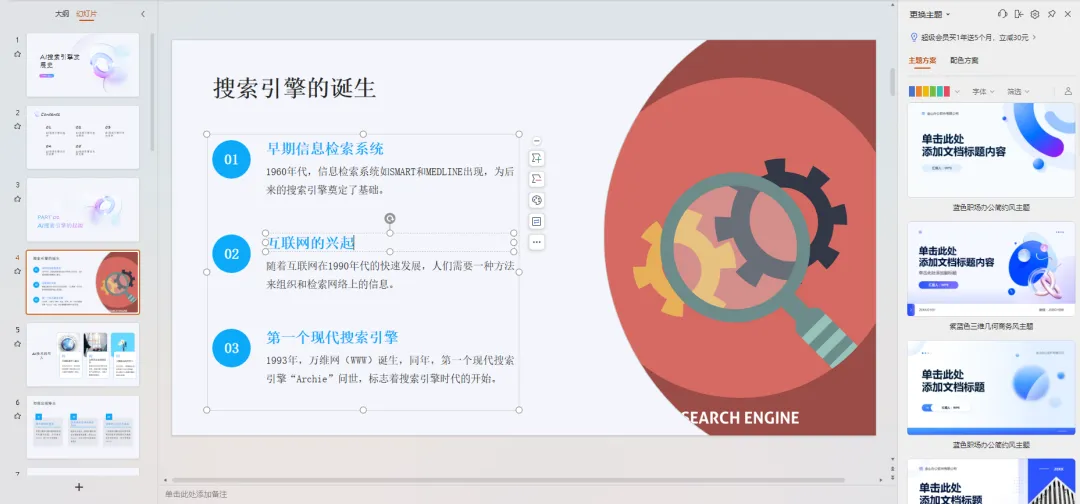 在流程上,夸克的AI 已經基本做到了符合用户先前製作PPT時的流程和習慣,即便不能完全替代人工,也至少給框架和版式的設計提供了思路。