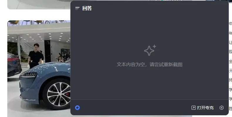 由AI搜索衍生出的截屏搜索功能,可以通過夸克設定的Ctrl+Shift+Z快捷鍵截圖後,自動識別圖中文字(包括自動翻譯),但目前也只侷限於識別文字,暫不具備識別物體的能力。