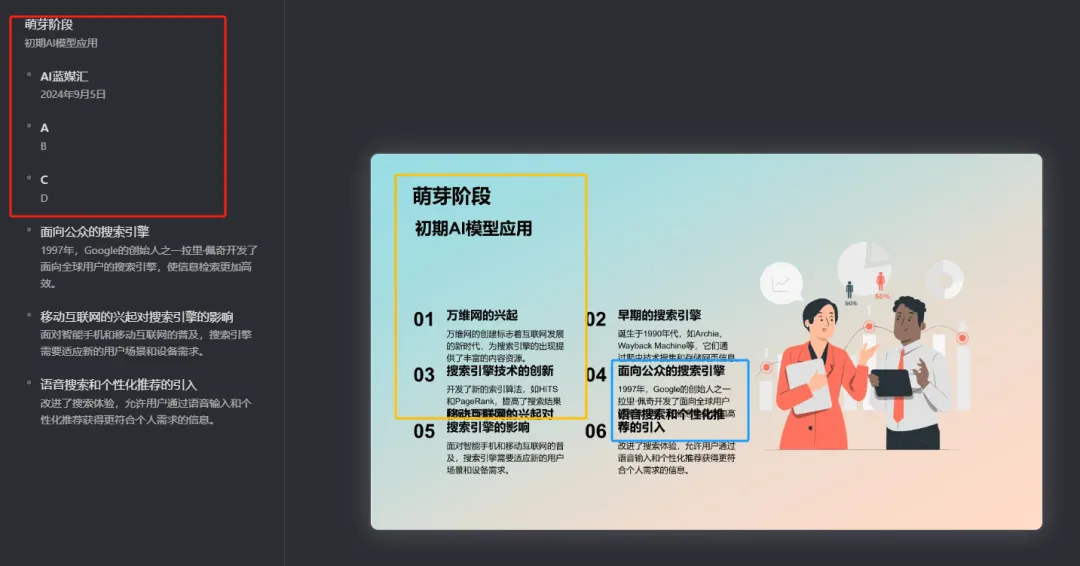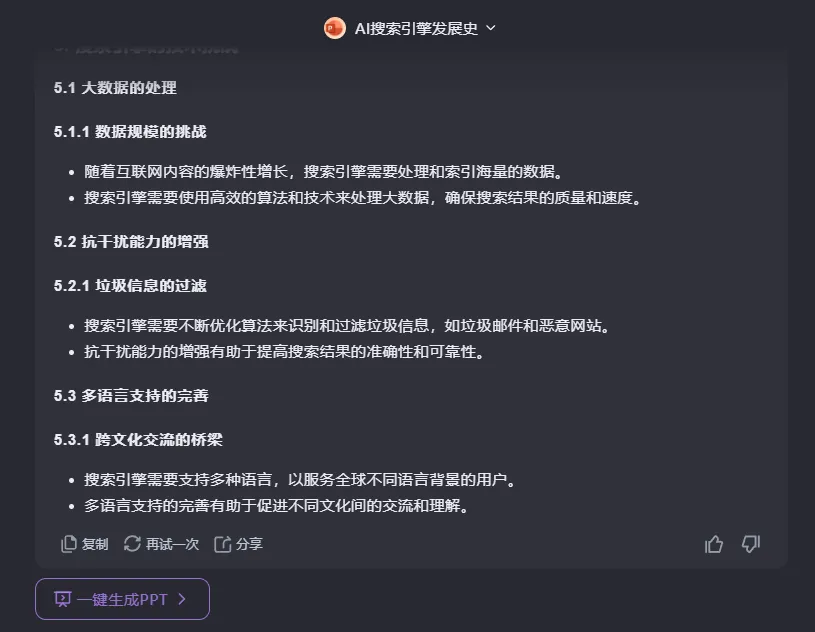 説回功能,比起相對通用的搜索場景,打工人在整理文件和製作PPT方面的需求無疑更為具象,一來長文本和PPT閲讀量、工程量大,處理起來客觀上麻煩,二來這些需求往往和具體工作內容甚至和KPI直接掛鈎,是職場中實實在在需要交的“作業”。