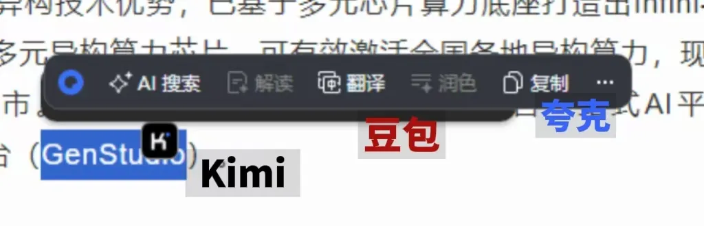 對於電腦中安裝了夸克、豆包甚至更多AI搜索插件的用户來説,劃詞搜索這個功能,今後勢必要做個取捨(可在夸克/豆包應用設置裏禁用這一項)。
