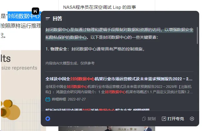 而作為又一款背靠桌面版應用的搜索工具,夸克此番更新的AI劃詞搜索和此前已然成為圈內熱門的豆包一樣,都提供了可聯網的AI總結,在給出可供跳轉的相關鏈接之外,由大模型生成一份省流版綜合性概述。