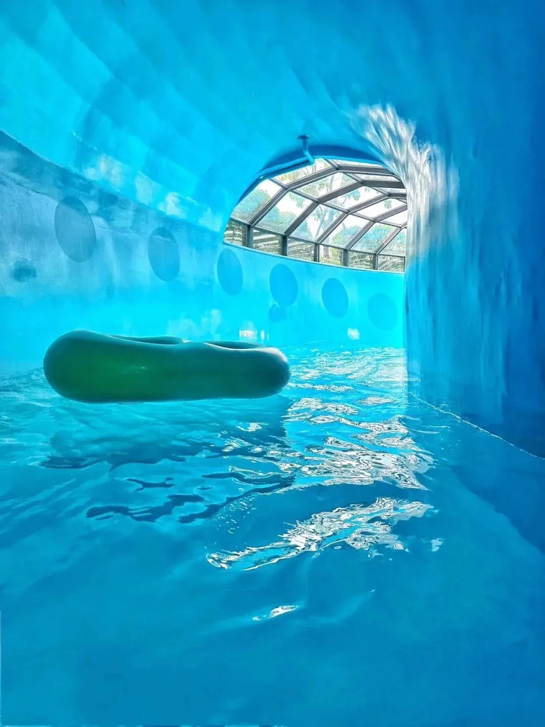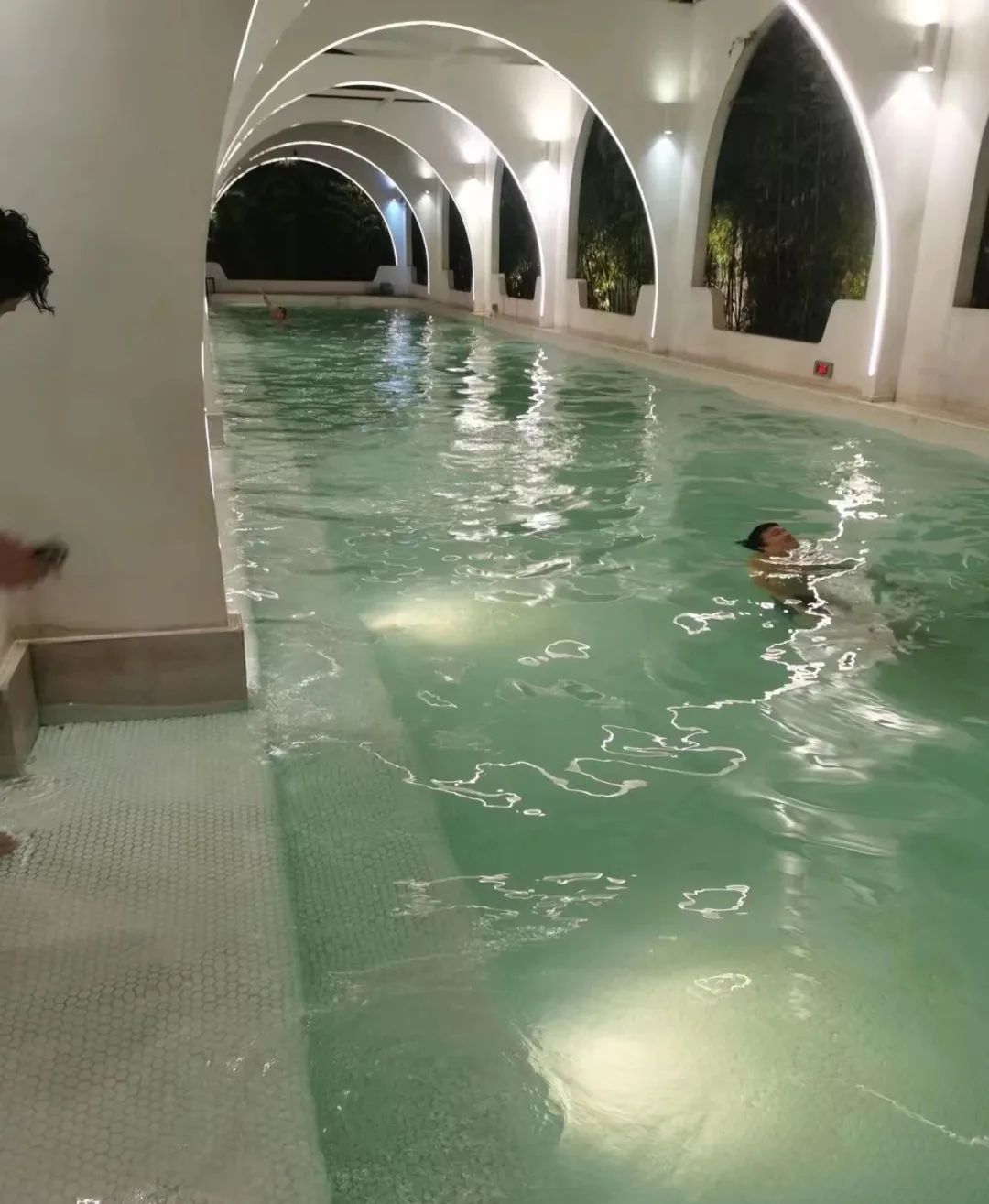 瀋陽的一家湯泉,不僅把室內的澡池子修建得宛如冰川一樣,還在室外建了可以用來漂流的場地。