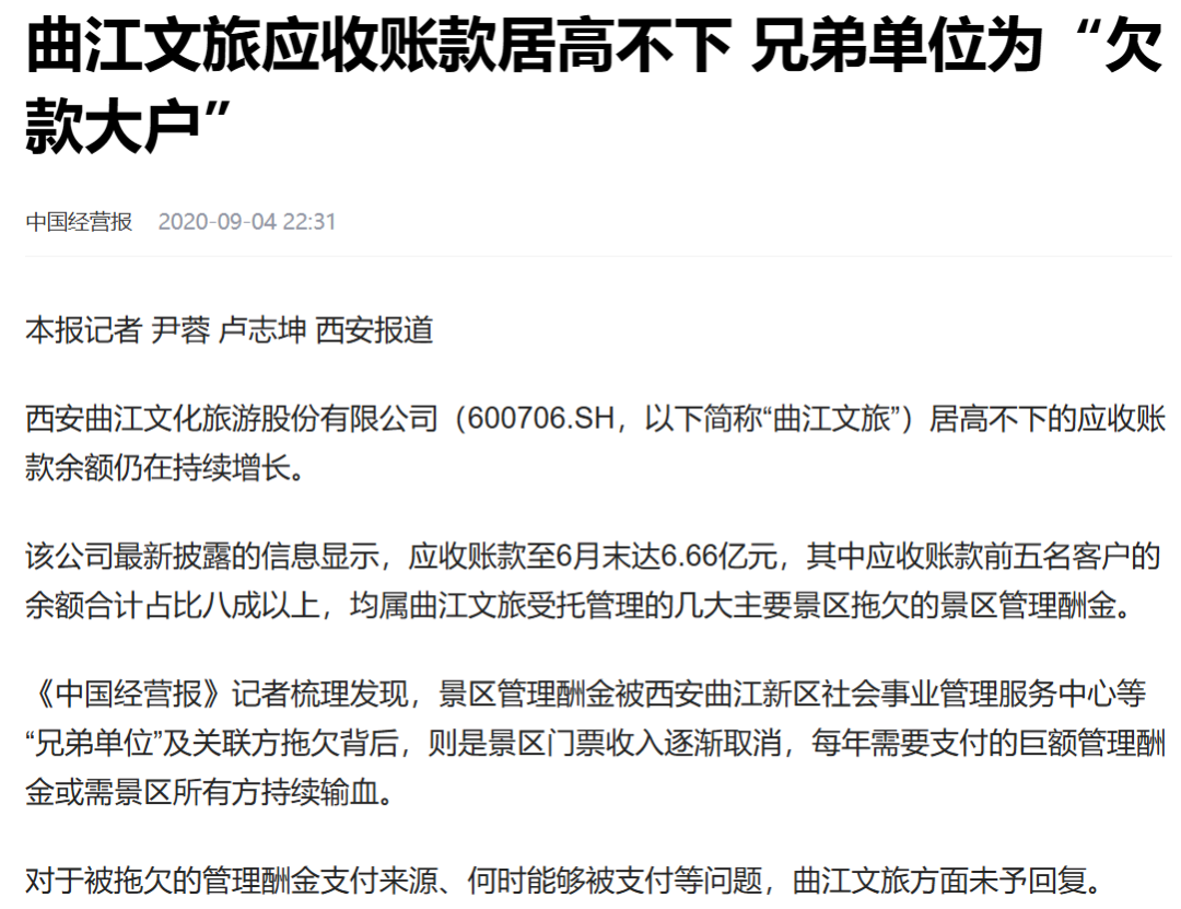 曲江文旅不敢對着他大爺造次,但4萬多股民不能眼睜睜地看着10多億應收賬款變成壞賬。
