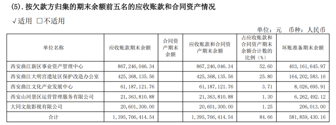 這三位哥們一共大概欠了曲江文旅13.5個億,而前五的應收賬款加起來也就只有13.95億。