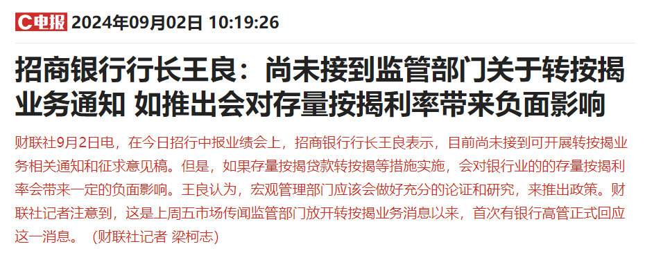 9月2日,隊長剛寫過了《38萬億存量房貸,或將迎來史詩級下調》,當時,後台還有很多人不相信。為什麼不信呢?一是,招行的行長出來説了句,沒有接到相關通知。二是,大家都不相信,銀行吃進去的利潤,怎麼捨得吐出來?