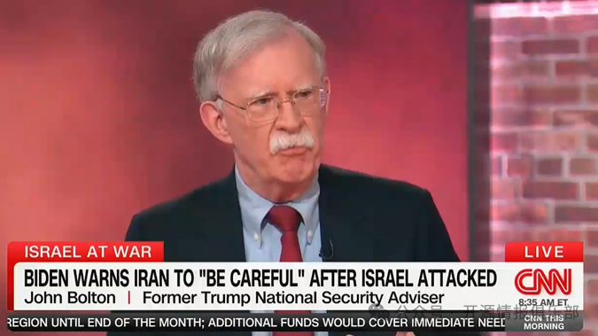 在哈馬斯10月7日發動襲擊後,知名的戰爭販子約翰·博爾頓(John Bolton)於2023年12月10號應邀接受了CNN的採訪,他聲稱“我們目睹的實際上是“伊朗以哈馬斯為代理人對以色列的攻擊”,美國必須立即做出回應”。當被問及他是否有任何證據時,考慮到他所説的話的含義,他聳聳肩回答説:“這又不是法庭。”