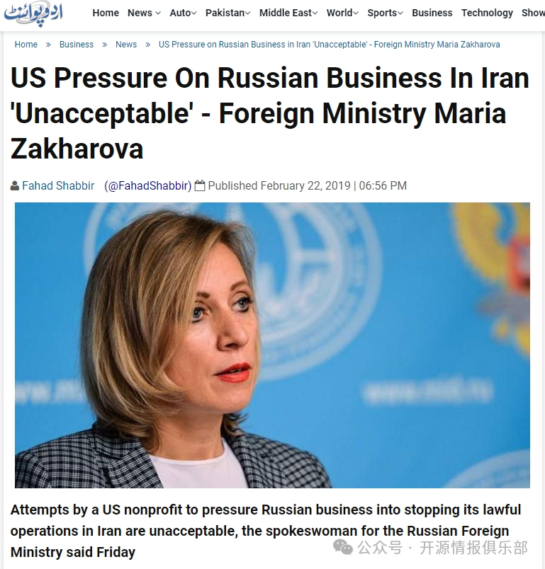 其中還包括空中客車和標緻雪鐵龍等法國公司,它們都受到法律訴訟的威脅。2019年,UANI因試圖恐嚇與德黑蘭有貿易往來的俄羅斯公司而受到俄羅斯外交部的正式譴責,俄羅斯外交部發言人瑪麗亞·扎哈羅娃(Maria Zakharova)對此作出回應:“我們認為這種行為是不可接受的,令人深感擔憂,試圖向俄羅斯企業施壓和威脅……是美國政府對不光彩的反伊朗事業的後續行動”,並且暗示美國政府與所謂的非政府組織之間勾結。