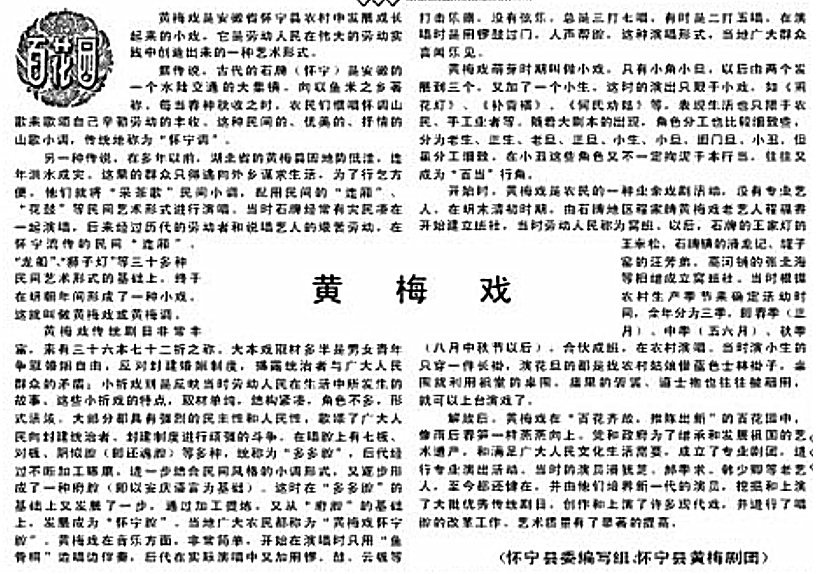 我們知道,在《人民日報》這篇文章出來之前,所有的研究、文章、著作中,黃梅戲起源都是湖北黃梅,即使有所謂的“三起源”的説法,黃梅起源説在其中仍然是占主導地位的。而這篇文章第一次提出了懷寧起源,是懷寧起源説的始作俑(“三起源”説中沒有懷寧起源説),也是後來安徽逐步將所謂“懷腔”操作、宣傳為劇種的基礎。