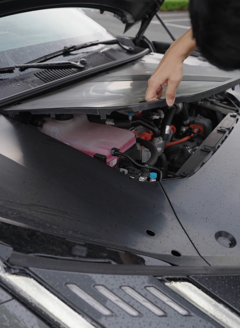 作為一台電車,**Z10 沒給前備廂。**要知道極氪 001 和銀河 E8 這倆,都是有前備廂的。我掰開蓋子看了下,感覺它勻一勻,應該是能整出一個來的。