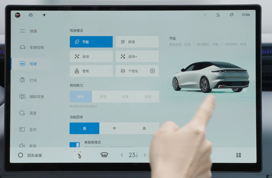 轉向助力有三檔,區別也是很明顯,運動緊,舒適松。我在極氪的車上都沒感受到這麼大的區分度。