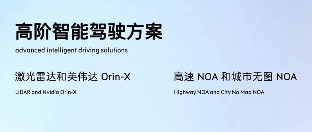 Z10 有一顆激光雷達,用了一顆 Orin-X 作為智駕芯片,官方説能支持高速 NOA 和城市 NOA ,高速 NOA 交付就有,城市 NOA 就得等後續 OTA 了。
