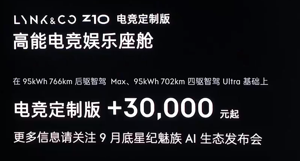 電競版只有兩個高配車型才能裝,加價 3 萬起,具體多少錢,得過段時間在星紀魅族發佈會上才知道。
