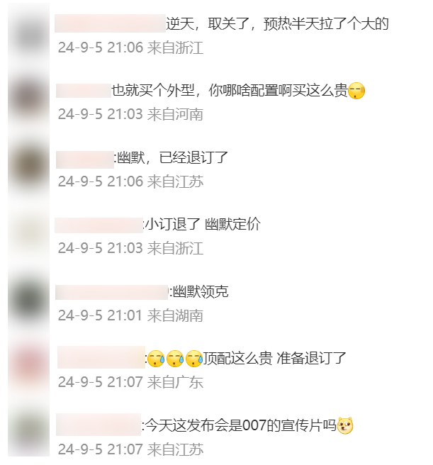 但從直播間以及網上的反饋來看,不少人覺得這個定價高過預期,還有人選擇退訂。