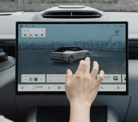 領克這回還是熟悉的 Flyme Auto 車機,但芯片升級了,這次是首發了 AMD 的 V2000A 芯片,官方説算力能達到高通 8295 的 1.8 倍。