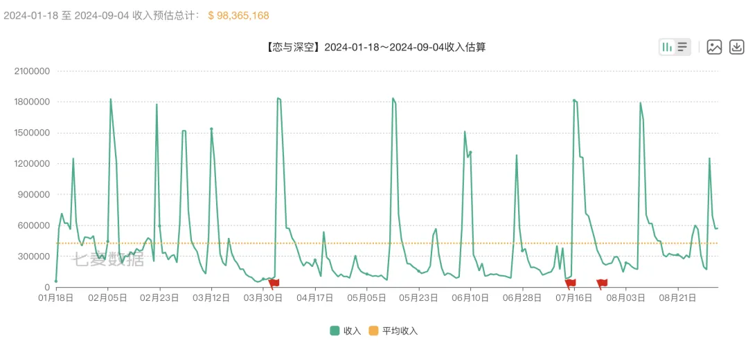 △截止到2024年9月4日,《戀與深空》的收入預估,來源七麥數據