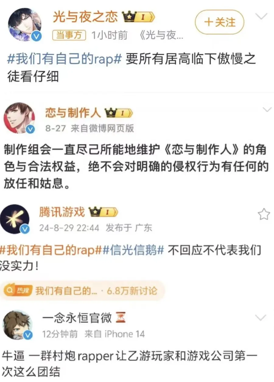 其他rapper也衝鋒陷陣,這場哈圈與乙遊圈之間的大戰,徹底打響。