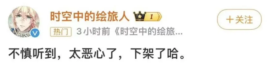 背靠網易的《時空中的繪旅人》直接開團,宣佈歌曲從網易雲音樂平台被下架。