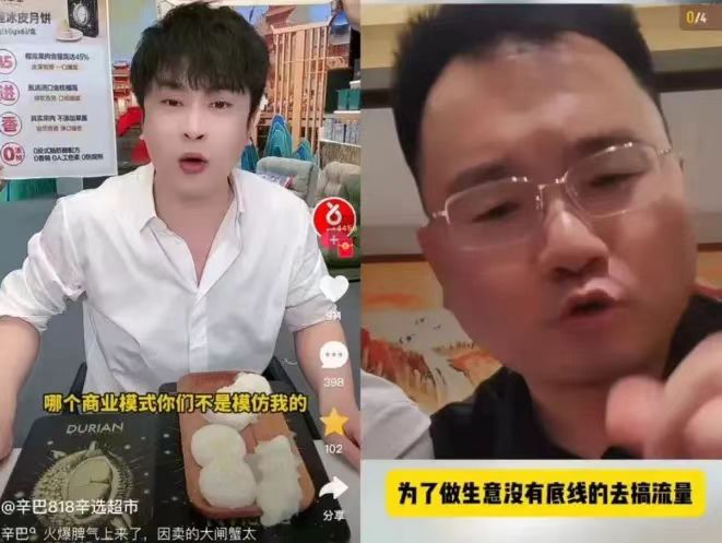 小楊哥曾稱辛巴是自己老師,辛巴如今炮轟三隻羊“哪個商業模式你們不是模仿我的”,儼然形成了互文結構。