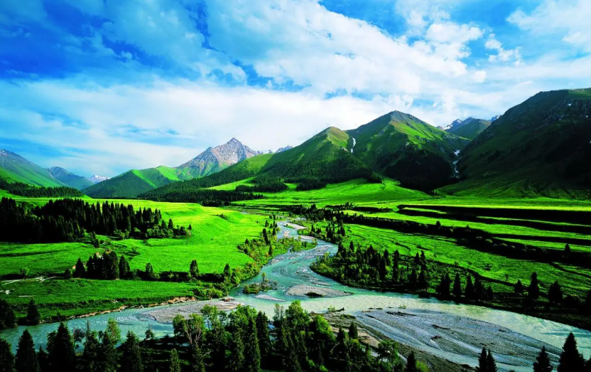 伊犁位於天山山脈西側,三面環山,伊犁河在此沖積出一片肥沃的谷地,自然資源充沛。
