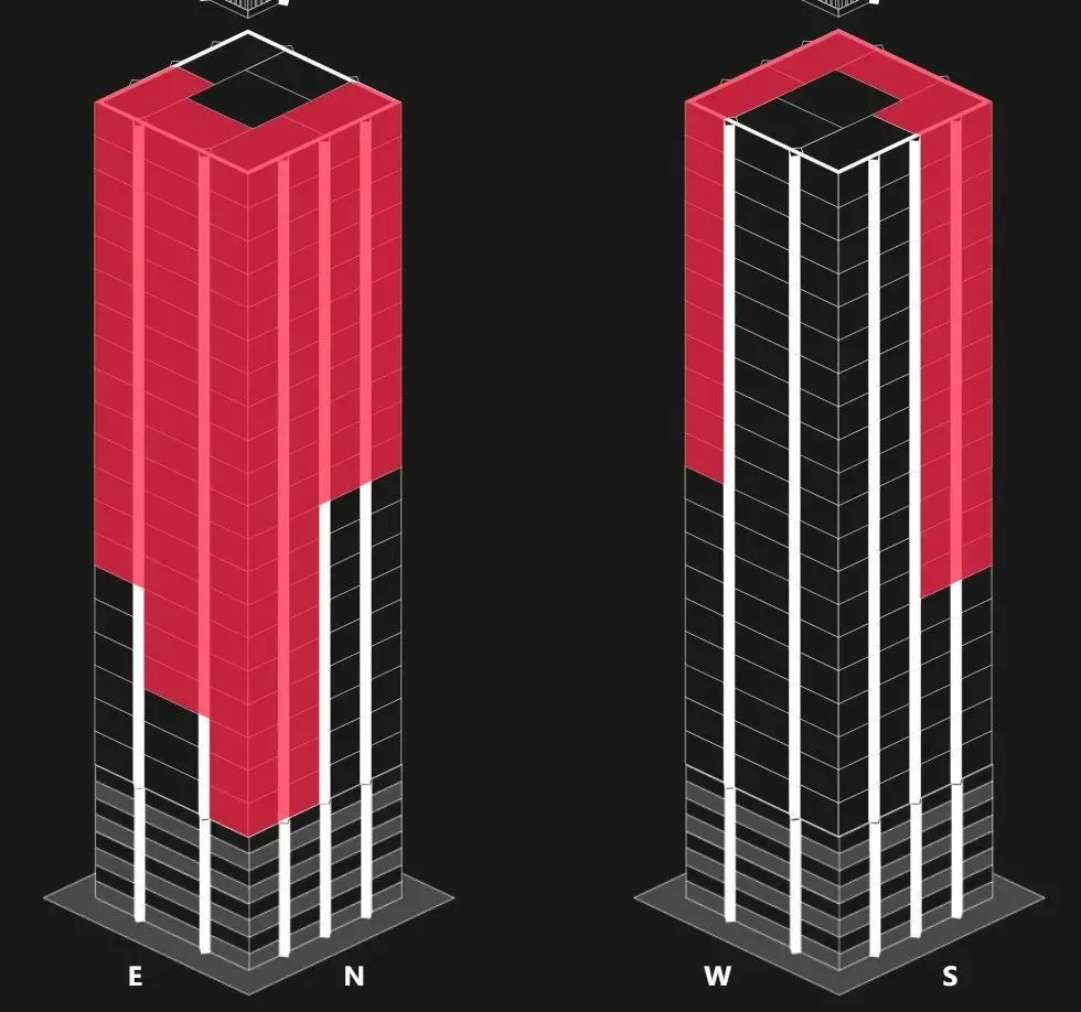 (凌晨01:20左右,大廈的火勢示意圖)