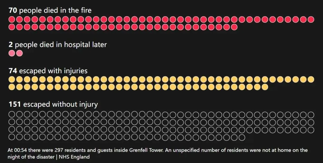 後經統計,火災發生時,大廈裏總共有297名居民。其中72人不幸喪命,包括一名未出生的孩子。