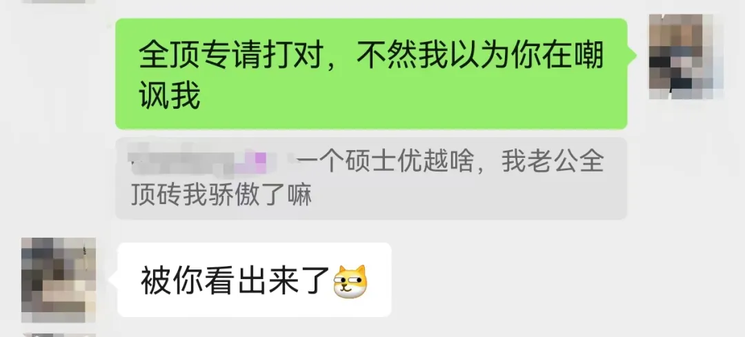 對面看我的眼神都變了,一點懷疑都沒有了。老婆在一旁盯着我笑,暗中豎起了大拇指,報了她被diss學歷之仇。