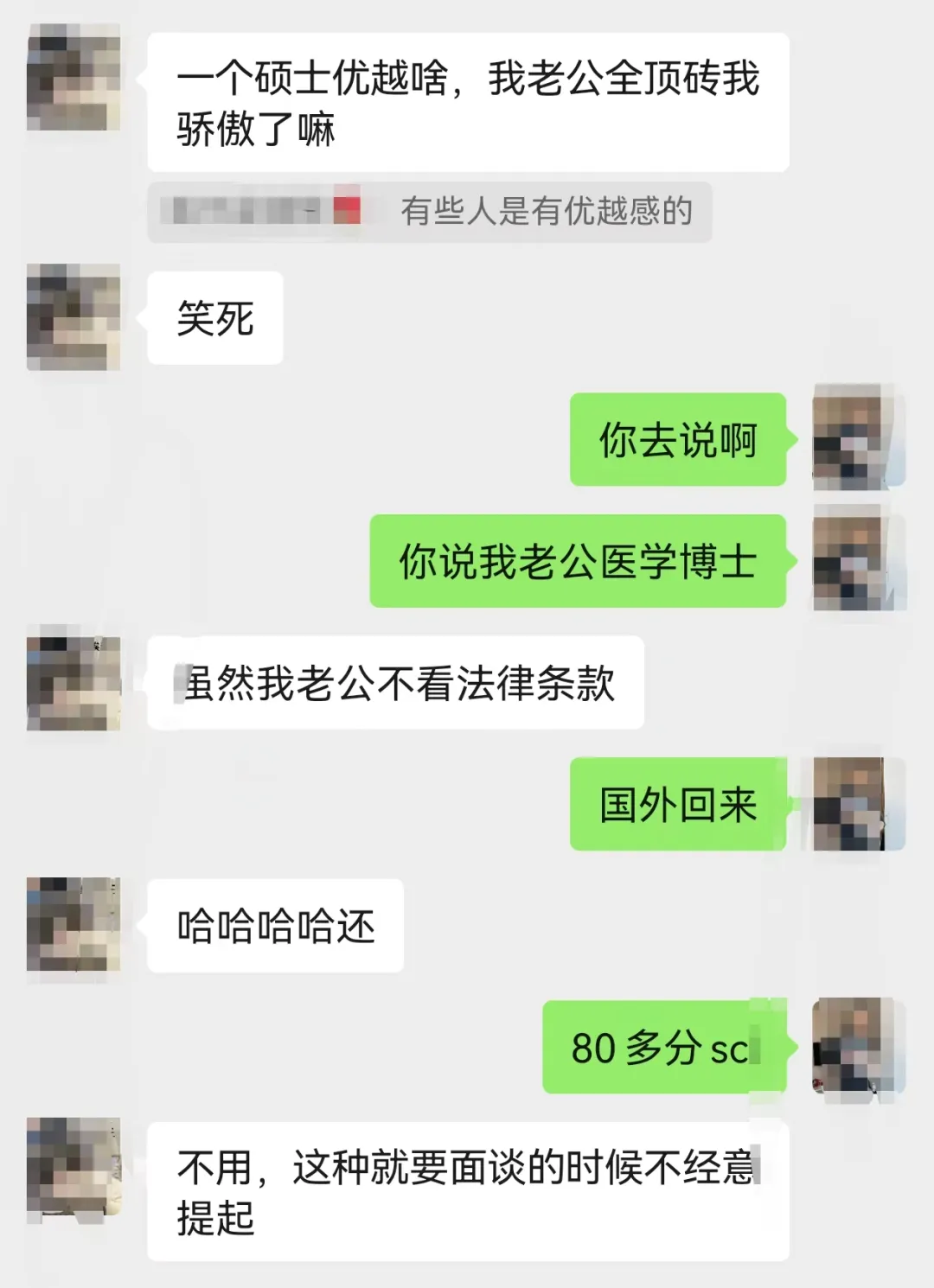這個“碩士”給我逗樂了,我一個醫學博士,我周圍都是協和交大復旦的博士,我説啥了我???