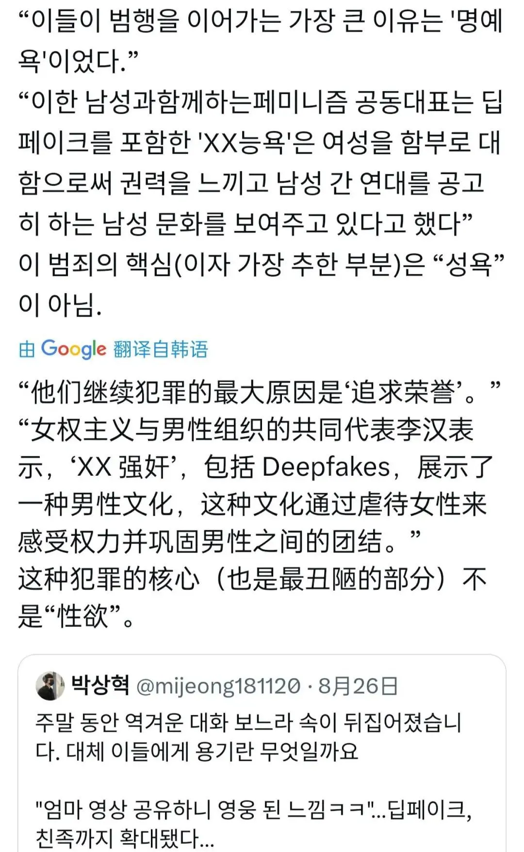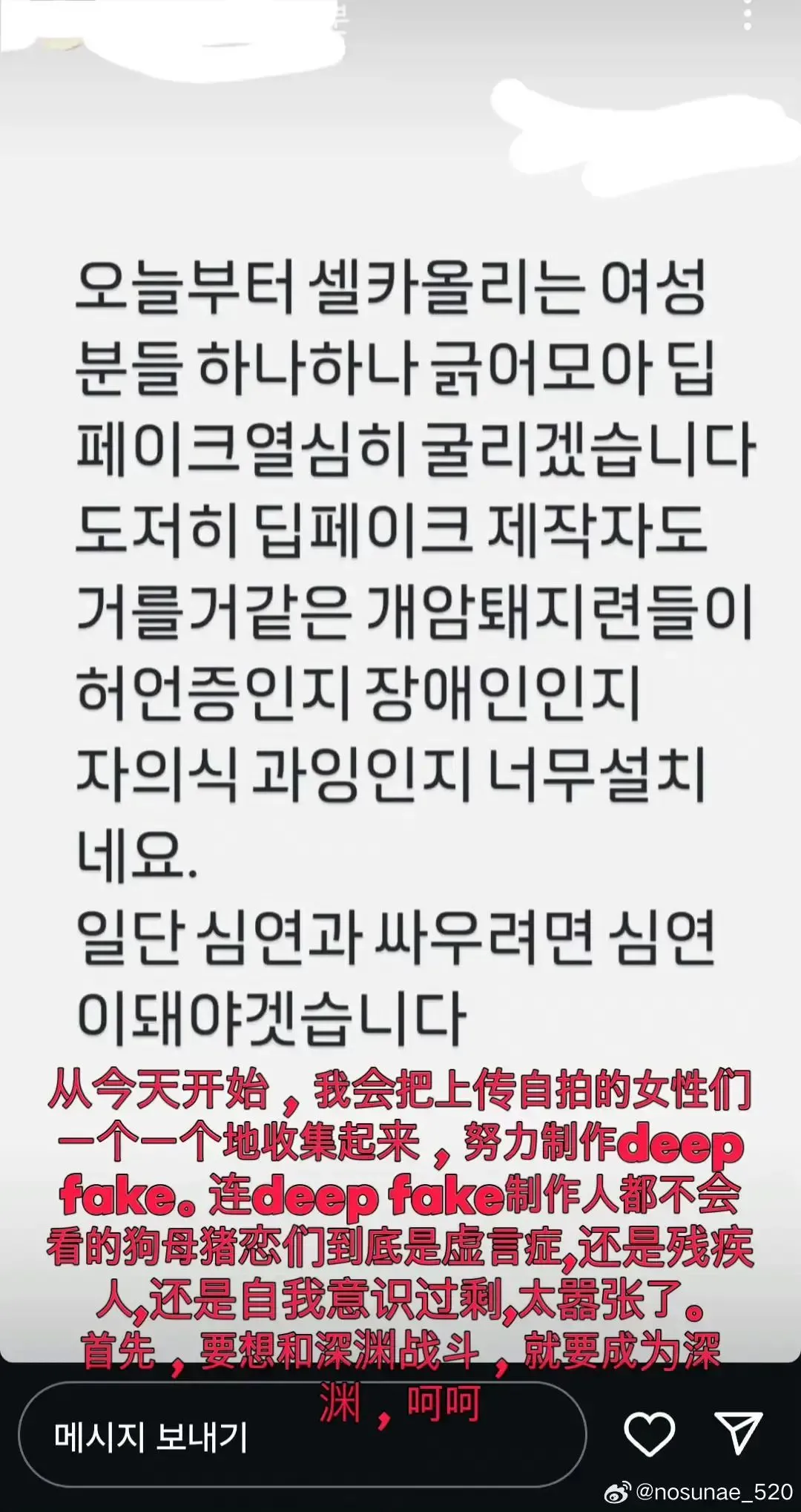 大男子主義,愛破防,搞偷拍不説,搞犯罪前有N號房,現在又出了個deepfake事件。