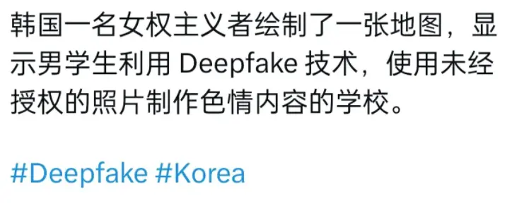 不誇張地説,deepfake技術成了韓國男性青少年肆意造謠和玩弄女性的幫兇。