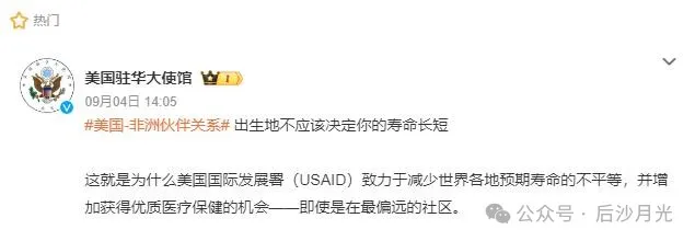 9月3、4日,美國駐華大使館連續發了與非洲有關的微博,話題是#美國-非洲夥伴關係#
